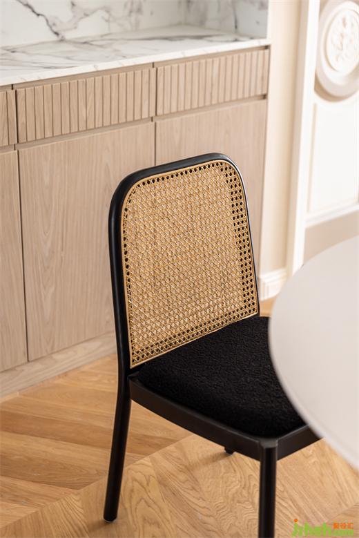 客廳書架奧松板現(xiàn)場(chǎng)制作,結(jié)合木雕花線條現(xiàn)場(chǎng)刷油漆,藤編柜門板工廠定制,花漾美作點(diǎn)綴了幾個(gè)豎隔板貼木飾面與餐邊柜做呼應(yīng),如此復(fù)雜的工序最終呈現(xiàn)了層次豐富、極具觀賞區(qū)的書柜。