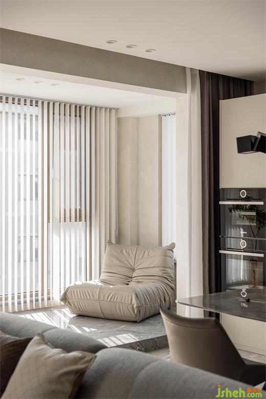 豎百葉引光入室,南京家裝設(shè)計細(xì)碎光影隨時間流逝在地面流淌,賦予了空間更多生機。