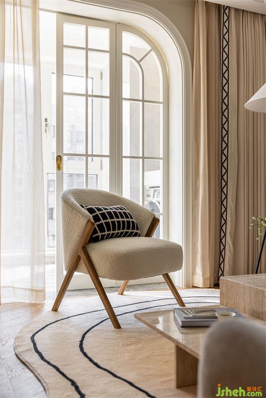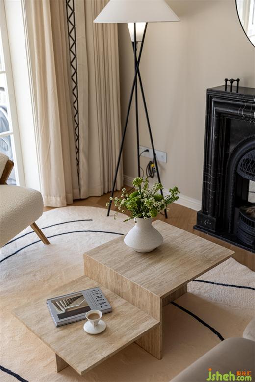 絨布主沙發(fā)輕巧舒適,顆粒絨單人椅造型簡(jiǎn)約美觀,洞石茶幾高低錯(cuò)落,棱角分明,軟裝搭配剛?cè)岵?jì),硬朗感與柔美性同在。