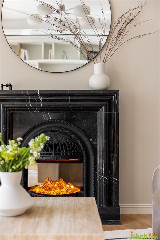 復(fù)古黑色壁爐作為客廳的核心,裝修設(shè)計(jì)是空間的一抹重色,夜晚打開(kāi)壁爐,在紅色燈光氛圍的映襯下,一家人圍坐在一起談?wù)摷页#貌蛔栽凇?