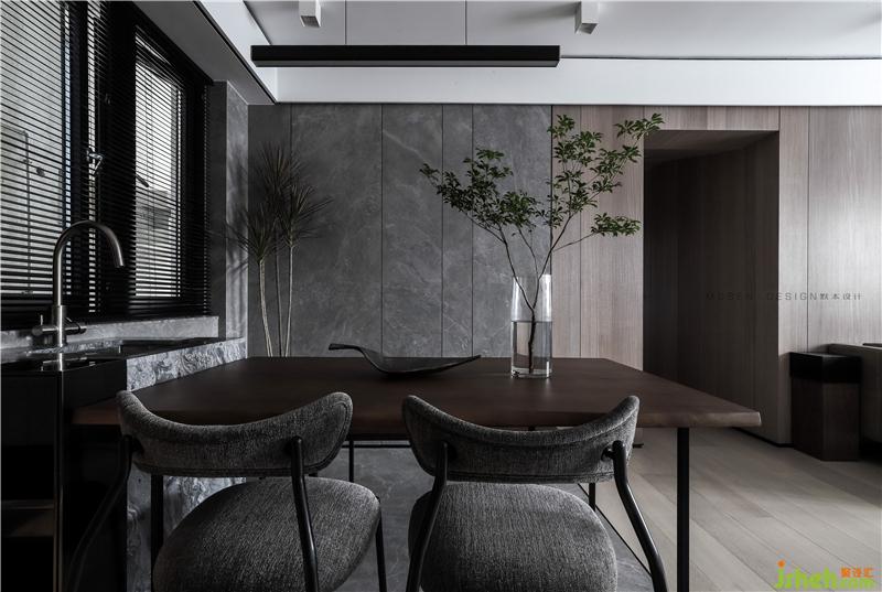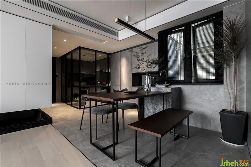 大理石地臺挑高,配合暗藏?zé)魩?,削弱空間壓抑感