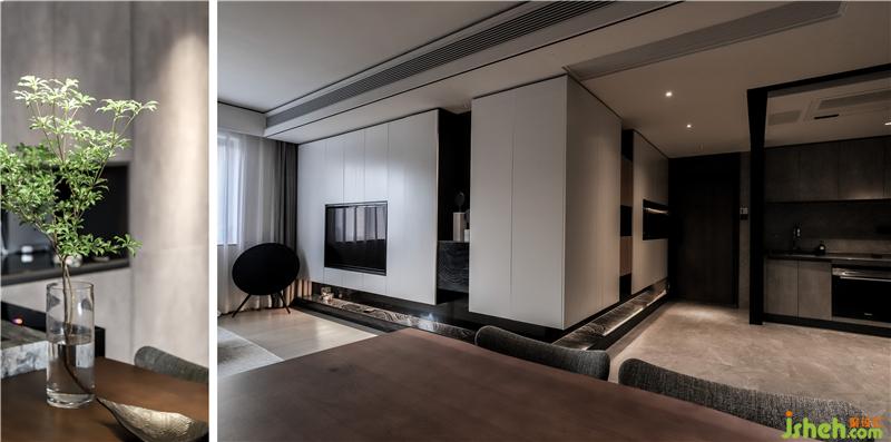 電視背景和入戶相互延伸設(shè)計,擴大整體空間感