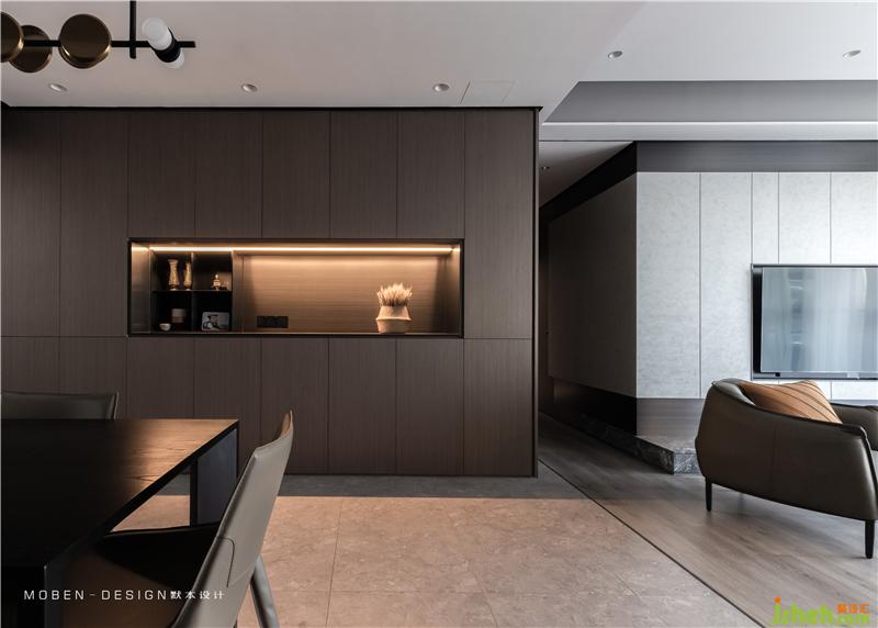 餐廳暗角做了線性燈光處理,使暗角改變成營(yíng)造氛圍的亮點(diǎn)