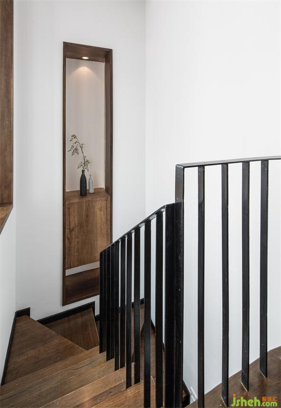 Due to the influence of the main structure of the building, the narrow stairwell can not be expanded, which has a strong sense of restraint on the upper and lower floors. I boldly demolished the shared wall between the two-story stairwell and the garden, and improved the stairwell from the perspective of vision and light. All the transformation is based on