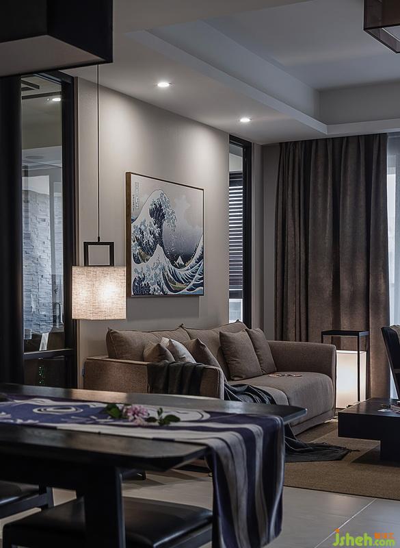 日式的裝修風(fēng)格一說(shuō)起來(lái)就讓人想到原木風(fēng)。竹、藤、麻和其他天然原木色材料,形成樸素的自然風(fēng)格。比如大名鼎鼎的優(yōu)衣庫(kù)以及“MUJI”風(fēng)格。這套作品色系走的并非原木風(fēng),而是另一種比較穩(wěn)重的色系,木質(zhì)線條以及家具顏色也是選的偏深的胡桃木色,整體給人非常舒適,安靜大方的感受。