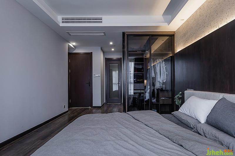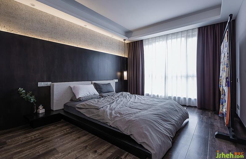 主臥床頭設(shè)計(jì)公司用木飾面做了半個(gè)墻面,上下分開,暗藏一整條燈帶,光線打出來,照在有木質(zhì)紋理的墻紙上,實(shí)地的看更具品質(zhì)感。整體簡潔的設(shè)計(jì)感讓人視覺得到享受。