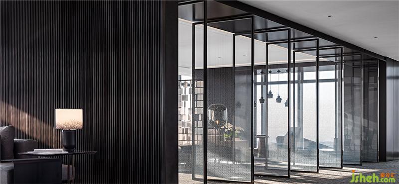 設(shè)計(jì)師延續(xù)了外立面的設(shè)計(jì)風(fēng)格,將玻璃、透明亞克力等材質(zhì)延伸到室內(nèi)設(shè)計(jì)中,光線透過這些材質(zhì),會(huì)交錯(cuò)折射出絕美炫幻的光影。這些光影會(huì)隨著時(shí)間的變化而變化,整個(gè)空間變得靈動(dòng)而富有藝術(shù)氣質(zhì)。辦公室設(shè)計(jì)