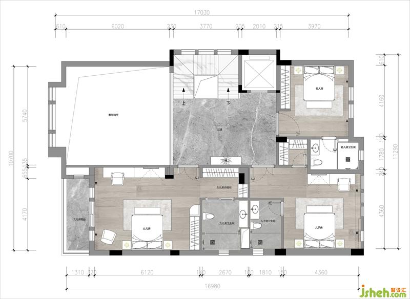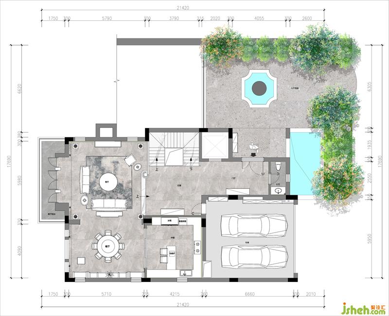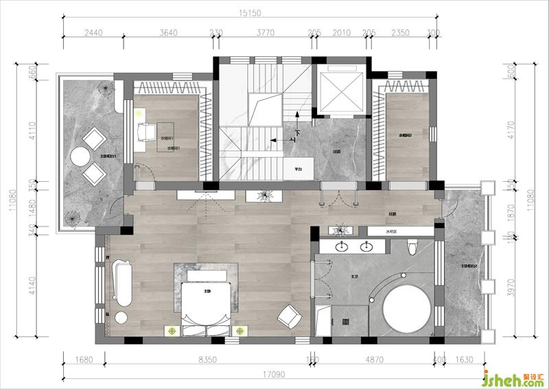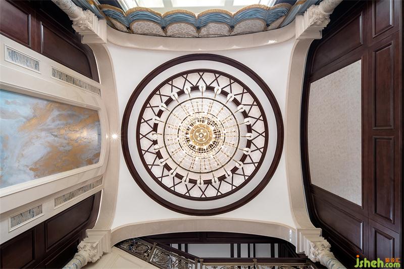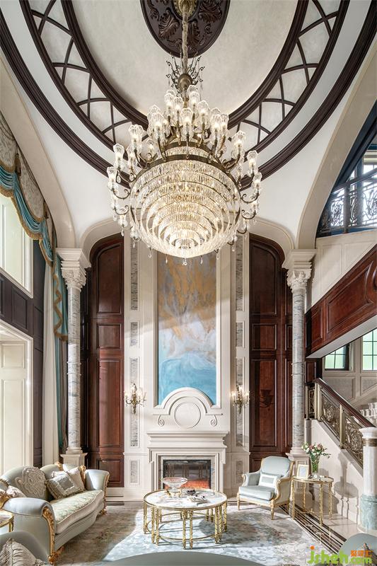 本案中設(shè)計師以中西貫通的靈巧構(gòu)思,選用材質(zhì)與色彩肌理極富質(zhì)感的建筑裝飾風格,在空間別墅設(shè)計中構(gòu)建出有生命力和傳承力的古典城堡生活場景。