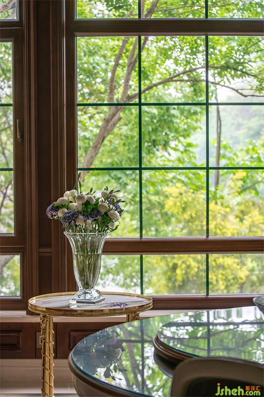 會客廳的輕柔窗紗被微風卷起,山脊涂上了一抹青色,鑲嵌于陽光與書籍之中,滿載著居住者對文化內(nèi)蘊與人文精神的內(nèi)在涵養(yǎng)。
