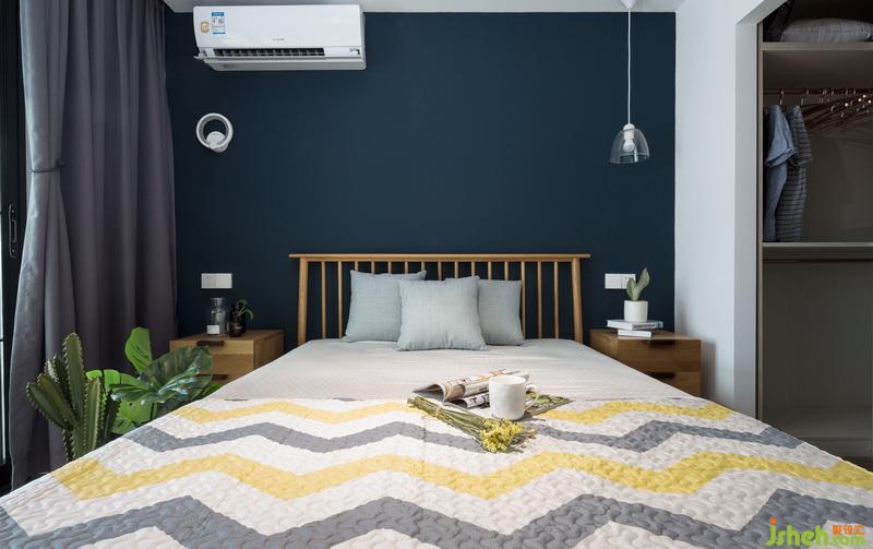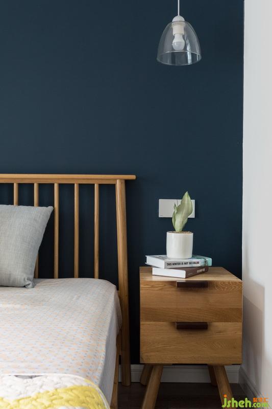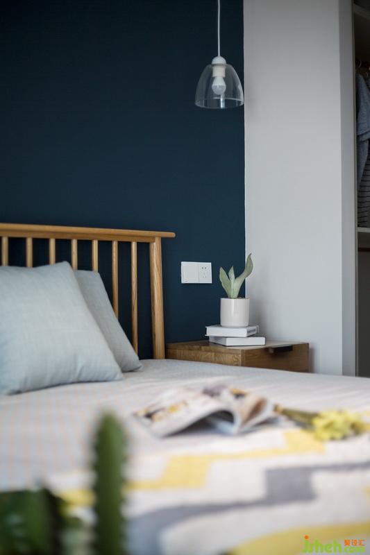 主臥室室內(nèi)設計師延續(xù)了北歐風格的簡單,深色的床頭背景更加沉穩(wěn),弱化了北歐風的冷酷感。