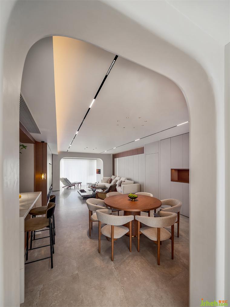 設(shè)計(jì)不再只滿足簡單的居住,更是對生活質(zhì)量、個(gè)性追求的表達(dá)。本案裝修設(shè)計(jì)以現(xiàn)代風(fēng)格為表現(xiàn)形式,將溫暖、宜居作為前提,重新梳理空間布局,著重考慮功能性與實(shí)用性,探索人與空間最適宜的相處方式。布局上,將入戶花園擴(kuò)展為玄關(guān)與茶室的結(jié)合,既充分合理利用空間,又滿足了屋主的喜好。將生活陽臺利用起來做中西廚劃分,拓展了公共空間的視覺效果,騰挪出更多生活場景。規(guī)劃出三間套房,注重各自空間的私密性,又給予一家四口無限的居住便利。在空間描繪上,曲直有度的線條、觸目皆是的留白、簡潔時(shí)尚的家具、溫暖柔軟的織物、生機(jī)盎然的綠植,各自處在恰當(dāng)?shù)奈恢茫窒嗷?yīng)和。刪繁就簡,展現(xiàn)張弛有度的平衡美,合力勾勒出這套四居室的品味。