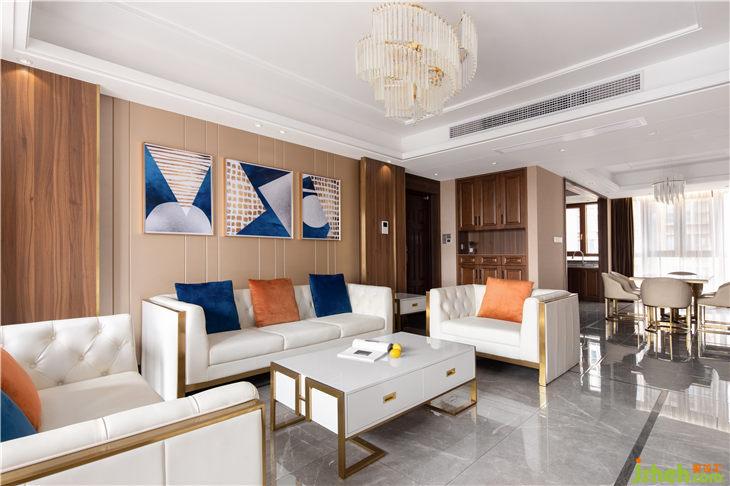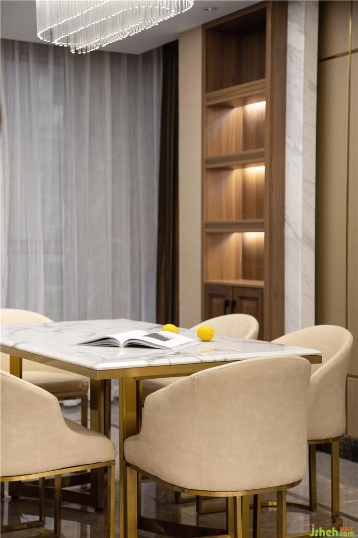 本案結(jié)合白、灰、香檳金等大氣典雅的調(diào)子,在設(shè)計方向從“輕奢”入手。正如馬蒂斯所說,“繪畫應(yīng)該是純粹美感經(jīng)驗的體現(xiàn),其目的不在思想性和喻意,而在于線條、色彩、形態(tài)的愉悅和舒適。色彩與線條都是力量,創(chuàng)造的秘密就在于利用并平衡這些力量?!边@句話挪用到設(shè)計也是極為合適。在白色加香檳金的基礎(chǔ)上點綴油畫藍(lán),使整個空間更具有詩情畫意。仿佛置身于春季的巴黎香榭麗舍的街道,爛漫而風(fēng)情。