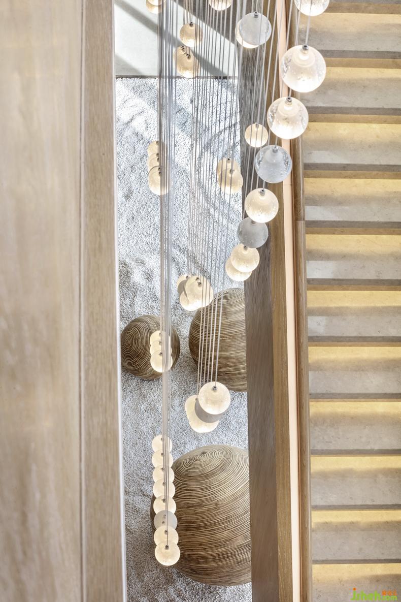 體量不等的幾件落地裝置藝術(shù)品,室內(nèi)設(shè)計師以其獨有姿態(tài)在空間呈現(xiàn),與不同設(shè)計元素之間展開對話。
