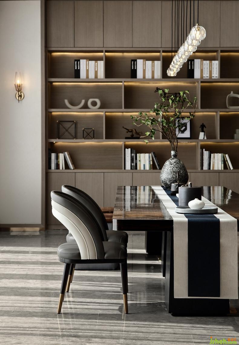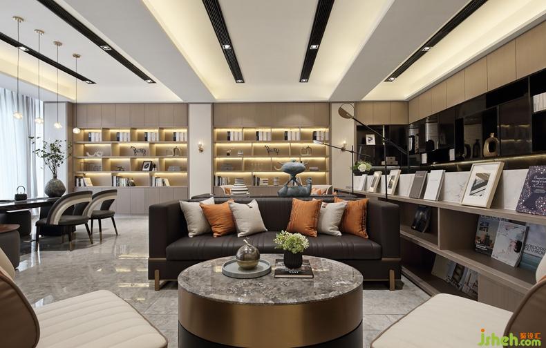 門扉洞開,清香自來。由洽談區(qū)轉(zhuǎn)入,充當書吧并茶室的空間是營銷中心非常獨特的設計。甫入空間,書香氤氳,茶韻芬芳,讓人身心迅速歸于寧靜祥和,富貴不計,得失不顯。