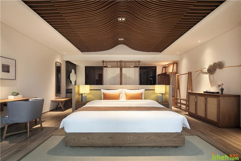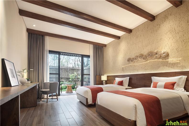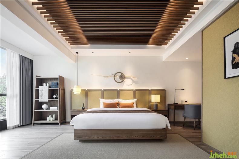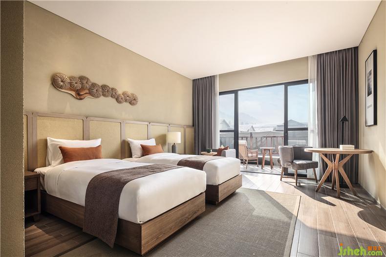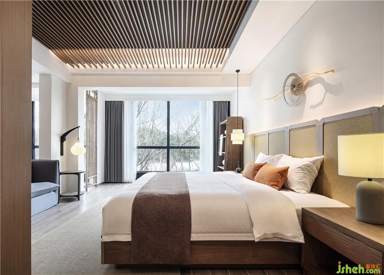 移步換景,得觀居室。室外晴日照,光影空靈,輔以竹藝、杏花等形色作點綴,酒店設(shè)計于方寸之間,交織出一室簡約雅致。