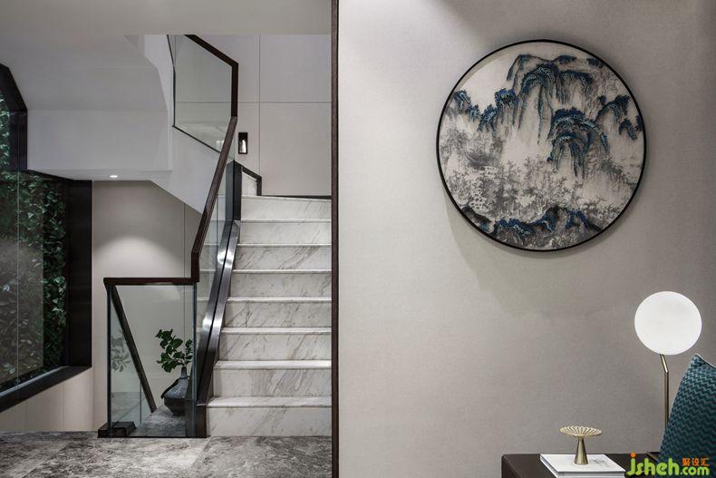 連接二層空間的樓梯,融入現(xiàn)代簡潔的線條,時(shí)尚的實(shí)木扶手與透明鋼化玻璃混搭,別墅裝修設(shè)計(jì)于簡約硬朗中透出讓人寧靜的力量,為過渡區(qū)營造明亮、通透的空間感受。