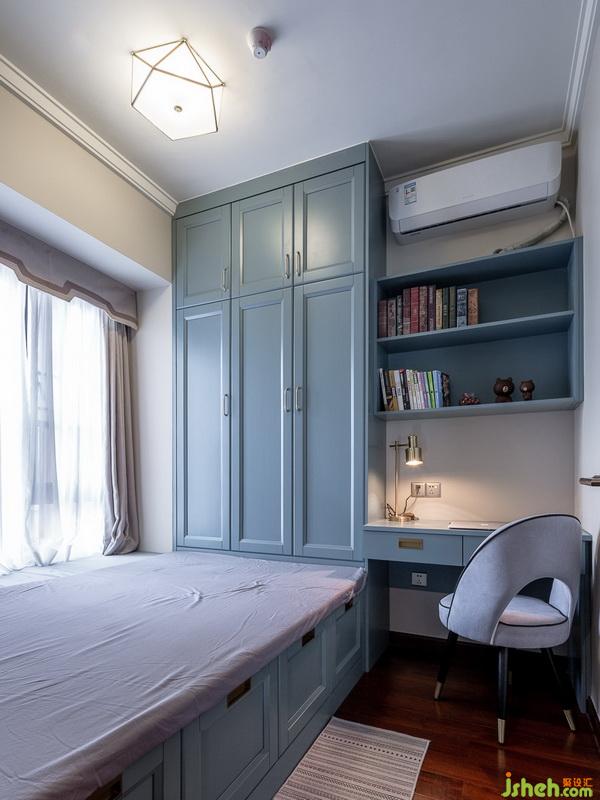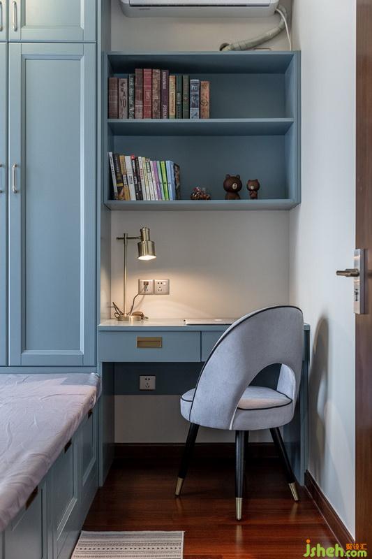 藍(lán)色,是業(yè)主夫妻鐘愛(ài)的顏色。藍(lán)色的美式,空間雖小,但是確十分溫馨。