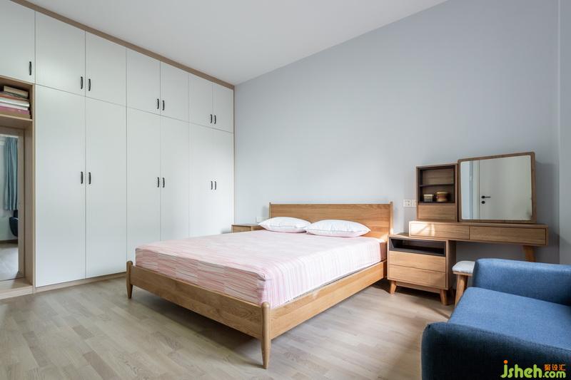淺灰色調(diào)主臥,搭配深藍(lán)色休閑沙發(fā),配上天藍(lán)色窗簾,靜謐中體現(xiàn)著細(xì)致,無(wú)處不讓人感受著溫暖與寧?kù)o。