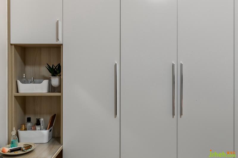 將原有的臥室過道空間融入到房間內(nèi)部,使得空間更大,且儲物空間也比原來大很多。原來的小孩房則改為主臥,將窗戶改為門,加建了一個小陽臺,既是晾曬區(qū)也是家里的一個小觀景陽臺。