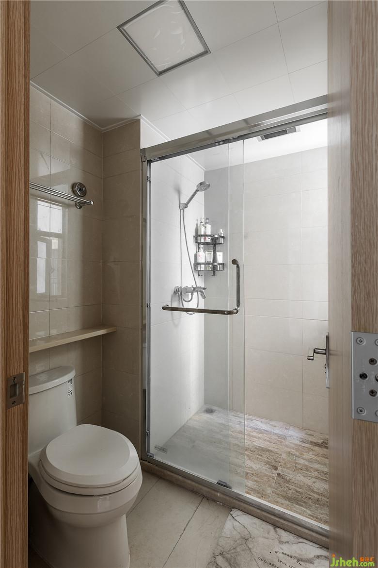 衛(wèi)生間是原精裝修帶的干濕分離,洗手臺外置,可以滿足日常使用。木色柜體和白色臺面收納和清潔也方便。