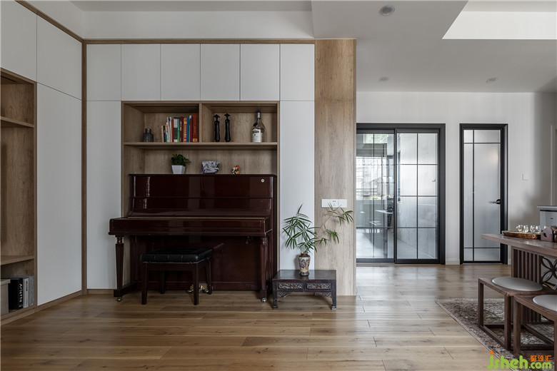 原有整個(gè)客廳采光不好,動(dòng)線不明?,F(xiàn)在設(shè)計(jì)中增加收納空間外,將從小陪女兒長大的鋼琴嵌入至整個(gè)L型柜子中,而我們的客餐廳設(shè)計(jì)將二者功能合二為一,既是客廳空間,又是餐廳,并兼顧了整個(gè)茶室會客功能。廚房空間與客廳又有一個(gè)很好的通光對流的效果。