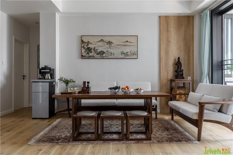 餐廳的功能靈活性很大,二者合一后,為將來退休后共享天倫時(shí)有更大的活動(dòng)空間。餐廳的那幅山水畫,還有男主人收藏的心愛之物是相得益彰。
