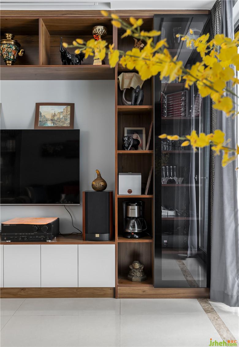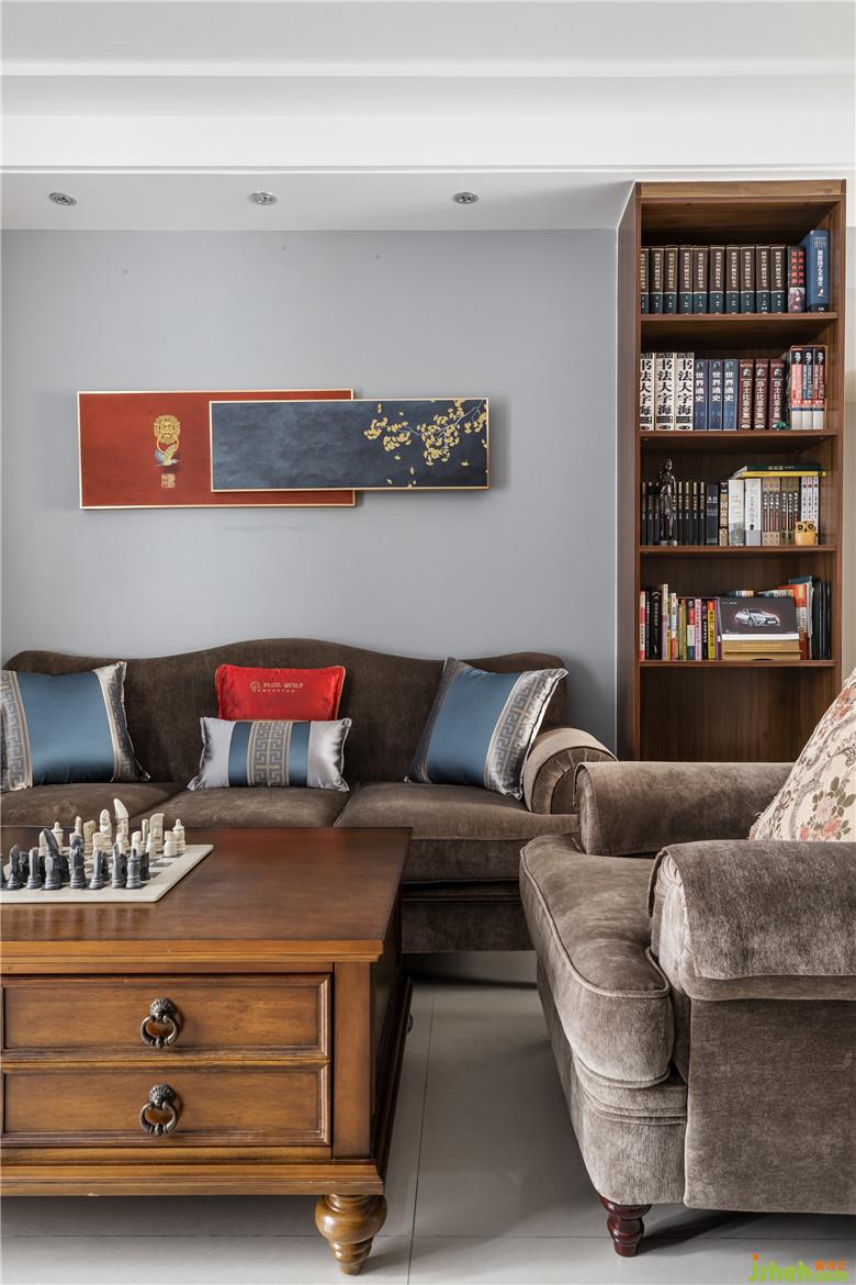 業(yè)主是一對恩愛夫妻,他們對清雅閑適的生活有著深深的渴望。所以將中式情韻以簡雅靜寧的格調(diào)呈現(xiàn)出來,讓居者在木作的紋理、陽光的滲透、清茶的幽香中,品味生活的煙火氣與安適感。念舊而有感情的綜色絨布沙發(fā),實木茶幾,中國風(fēng)的掛畫,書架,國際象棋,一家人聚在一起,其樂融融,就是業(yè)主日常生活寫照......