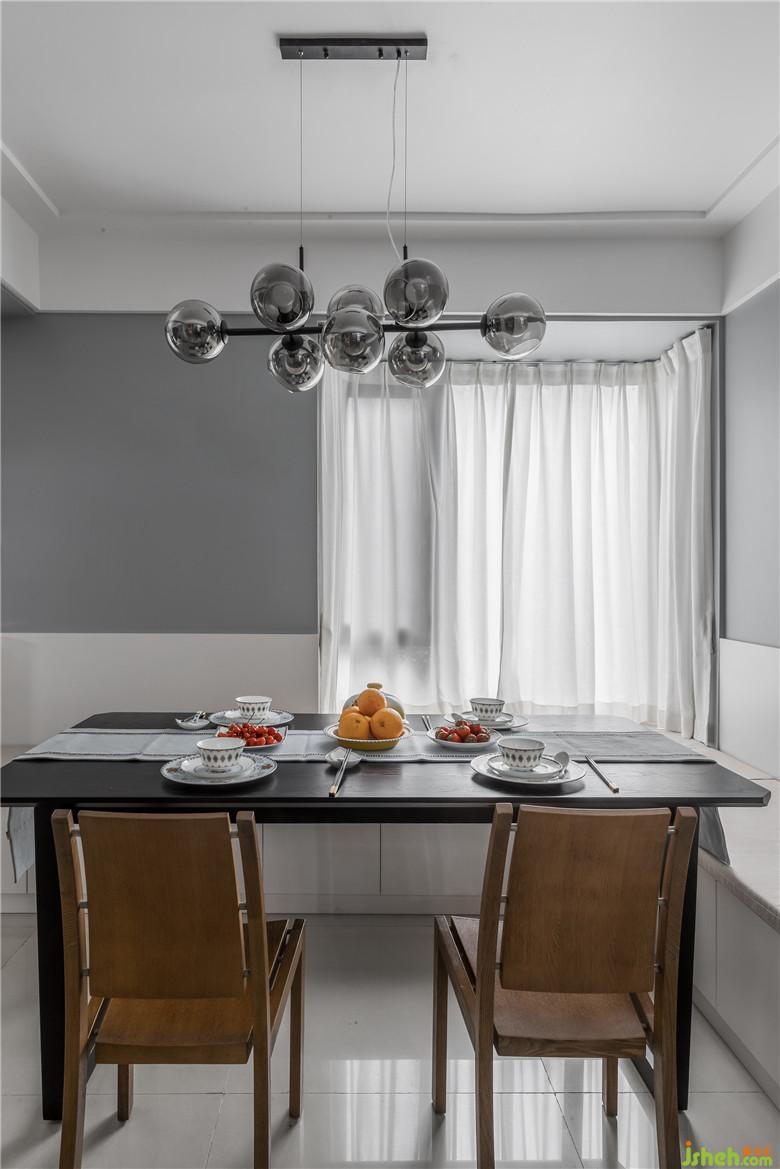 餐椅的另一邊采用卡座,除了增加儲物外,在這里辦公的話,累了可以座在卡座上望著窗外美景,讓人很隨意舒適。