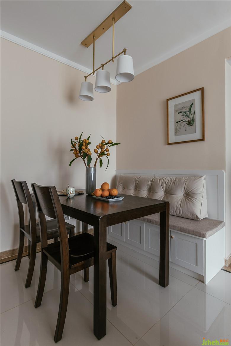 客廳:軟軟糯糯的奶茶色,是阿蓮的最愛(ài),于是裝修公司用在了墻面上。舒適的淺色布藝沙發(fā),圓角的木質(zhì)家具,一深一淺,一輕一重,張弛有度。窗簾、抱枕和裝飾畫(huà),悠哉悠哉地彼此呼應(yīng)著,青翠欲滴。裝飾畫(huà)的外框獨(dú)得我心,做舊的金色畫(huà)框,有些斑駁的印記。為這個(gè)空間帶來(lái)一絲復(fù)古的感覺(jué)。時(shí)光易老,不負(fù)流年。