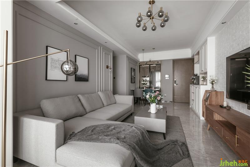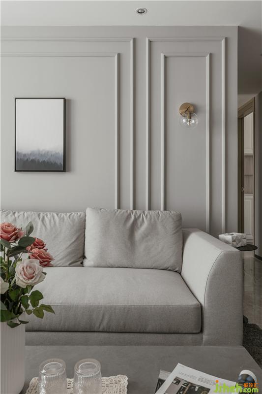 干練簡潔的線條,沒有過多的色彩。淺灰色的布藝沙發(fā)組合再加上奶灰色的墻面色讓整個空間更加優(yōu)雅。