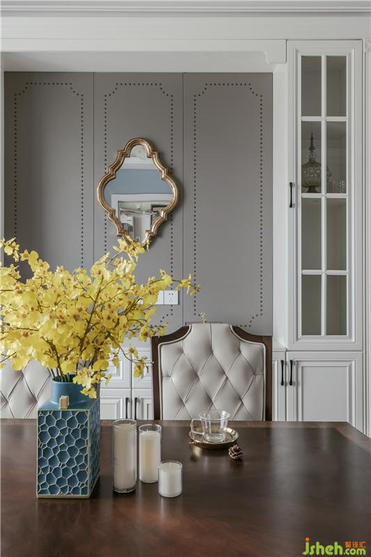整個空間營造出一種寧靜淡雅的就餐氛圍,美式造型餐桌搭白色皮質(zhì)的餐椅,質(zhì)感生活從此刻開始~