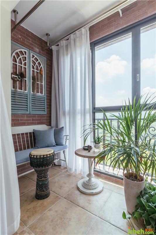 陽臺沒有浪費,沿用了美式鄉(xiāng)村的風格,仿紅磚的文化磚搭配上淡藍色的木質(zhì)窗框作裝飾,體現(xiàn)了舒適優(yōu)雅的生活趣意~