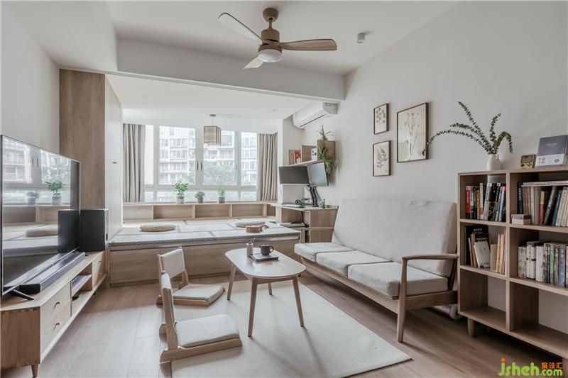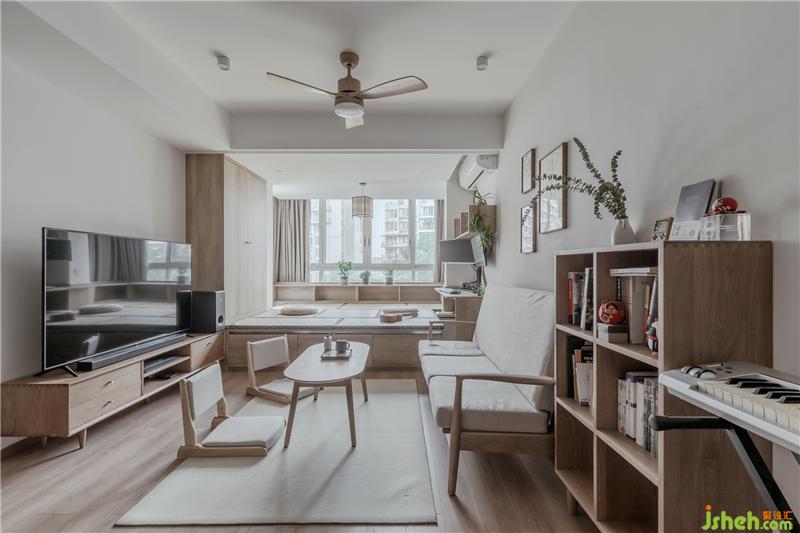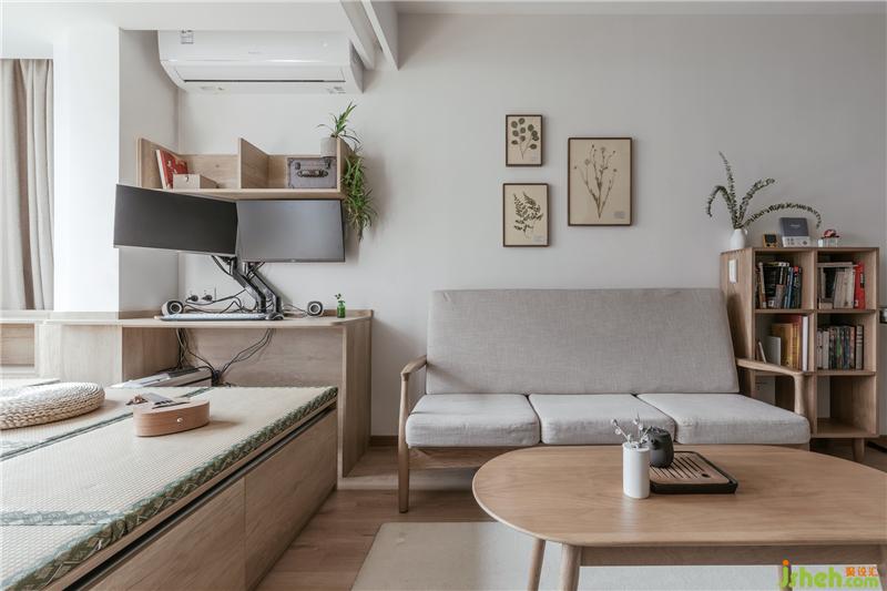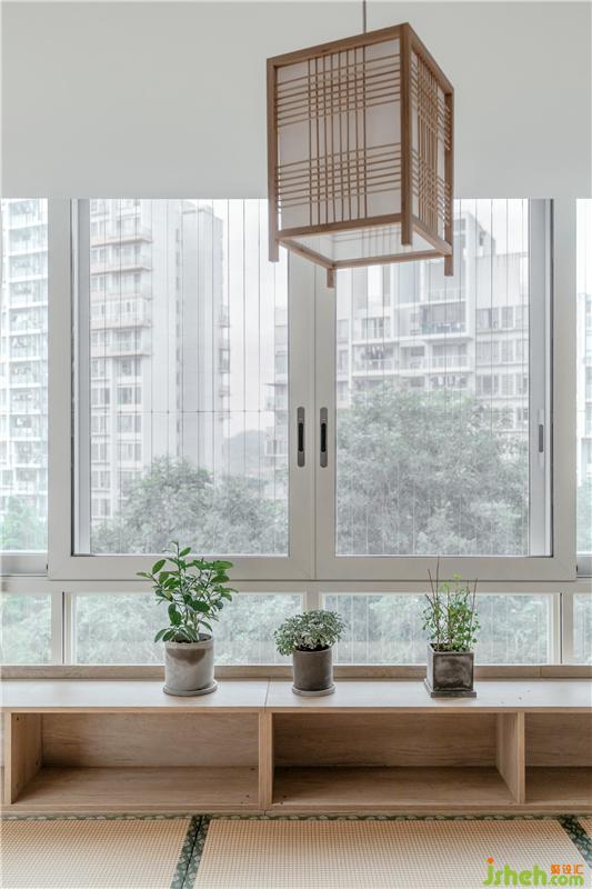 我們把原始空間的休閑陽臺(從客廳打通)分成了2塊,一塊作為客廳以后的小朋友與大人的閱讀,tan'q區(qū)域,一塊作為了榻榻米的會客與喝茶區(qū)域。