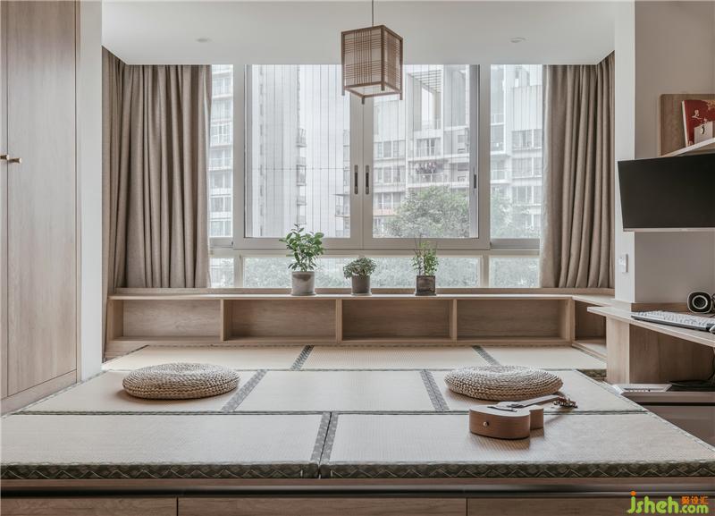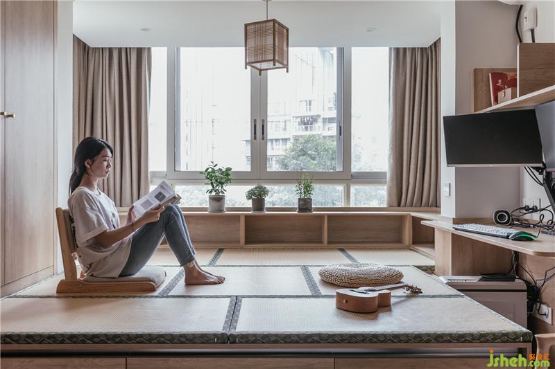 在榻榻米的一側(cè),我們還為男主人設(shè)計(jì)出了他的辦公區(qū),腳下區(qū)域留出空間,更加舒適~