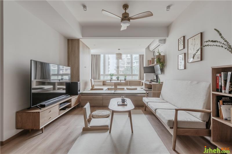 整個(gè)榻榻米增加客廳收納,后期需要拉上簾子,可以作為客人的休息區(qū),滿足了偶爾朋友留住的需求。