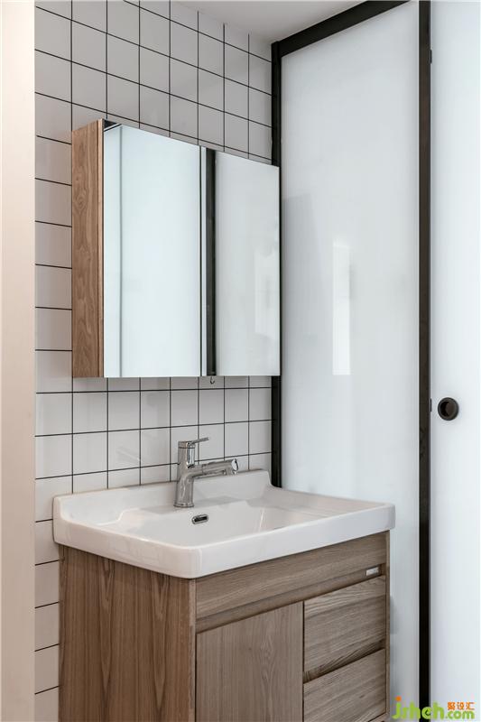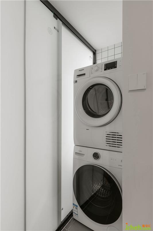 衛(wèi)生間,我們在2.5㎡里實(shí)現(xiàn)了四分離的設(shè)計(jì)??紤]了整體的效果,我們把洗衣烘衣機(jī)外置了,馬桶和淋浴區(qū)也可以單獨(dú)使用。