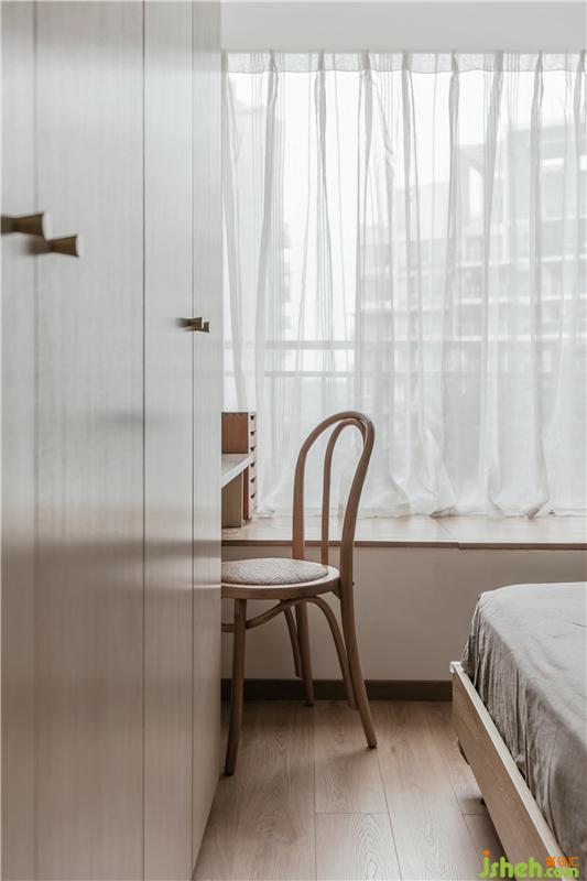 主臥的整體設(shè)計(jì)是非常溫暖,寧靜的,柜子的木色選擇,以及家具的風(fēng)格都很有考究,衣柜的一側(cè)作為書桌滿足了女主人的辦公,超大的飄窗,讓空間顯得更寬敞明亮。