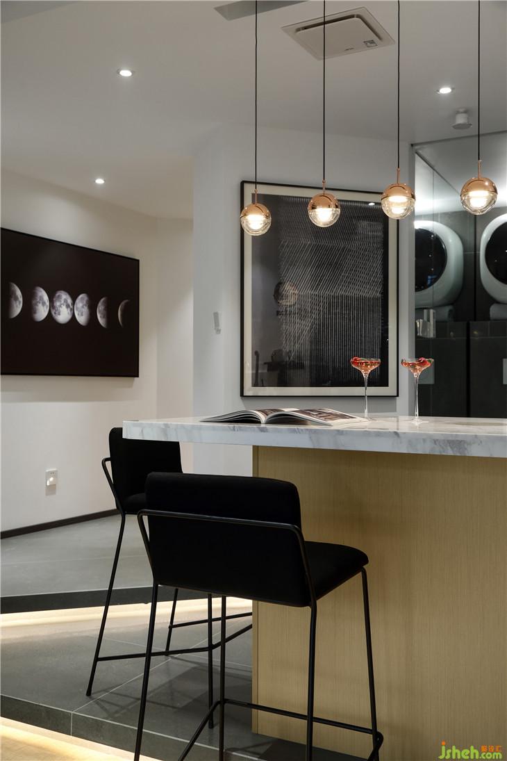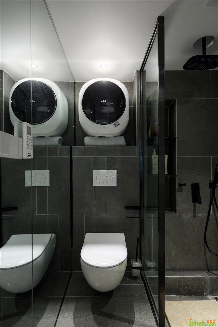 在不足2平米衛(wèi)浴的空間里,干凈的灰色磚藝術(shù)拼貼給人以力量感,與整體空間呼應(yīng),不失統(tǒng)一,壁掛洗衣機(jī)有點(diǎn)萌,頂噴式花灑與下沉式淋浴區(qū)遙相呼應(yīng),讓整體看起來(lái)更加自在隨心。多樣式燈光的運(yùn)用,拉開(kāi)了空間的虛實(shí)對(duì)比關(guān)系,豐富了層次,端正穩(wěn)重又不失秩序井然。