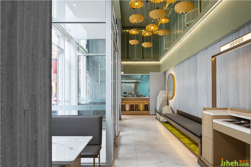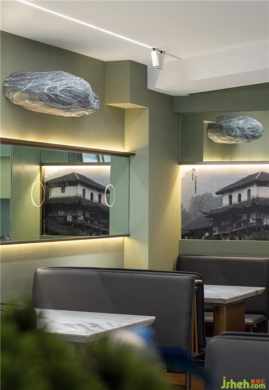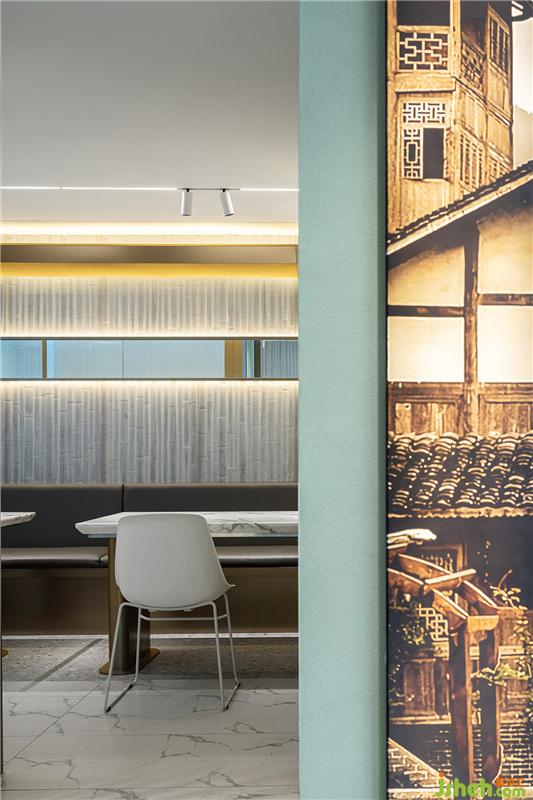“體驗(yàn)店”對餐廳設(shè)計(jì)要求極為細(xì)致,其首要功能是線上店的廚房加工點(diǎn),其次才是堂食的功能,留給就餐的面積就會很精簡。為了有效的利用面積和營造絕佳的就餐體驗(yàn),我們設(shè)計(jì)團(tuán)隊(duì)不斷的優(yōu)化動線和整合功能,打造了一處簡約高效、兼?zhèn)鋫鹘y(tǒng)與時尚的藝術(shù)餐廳設(shè)計(jì)空間。