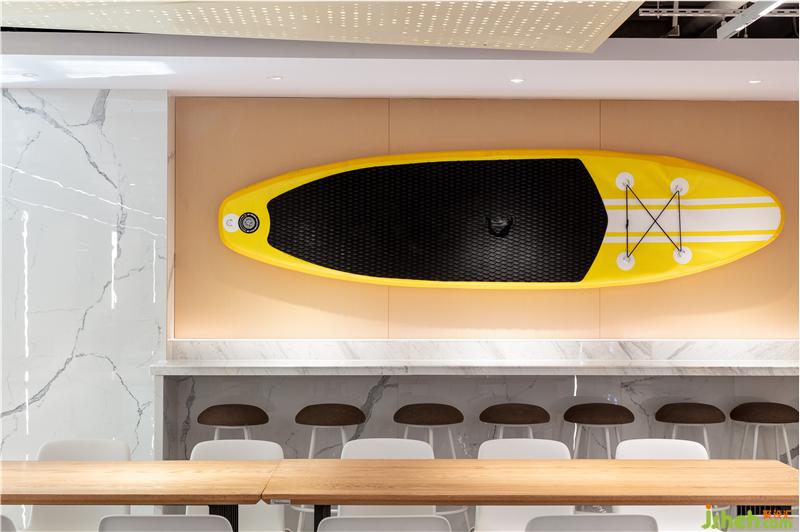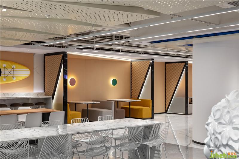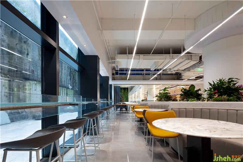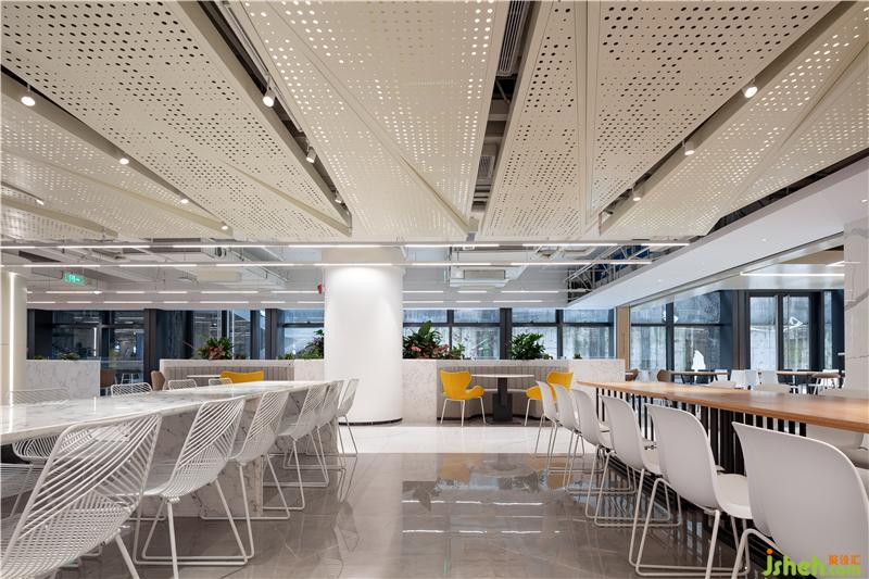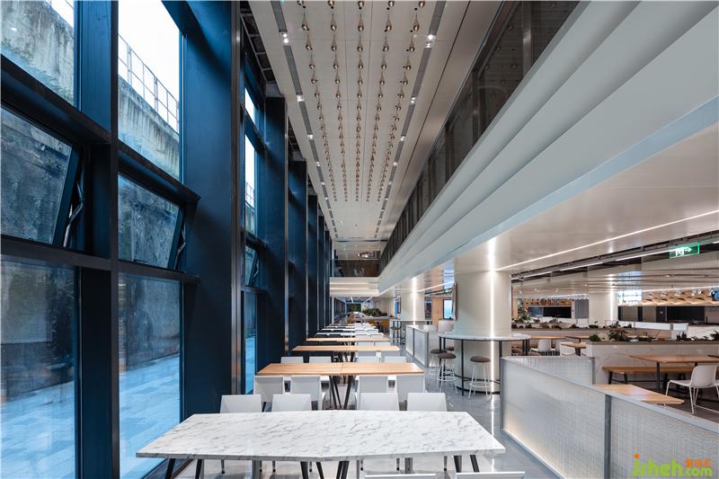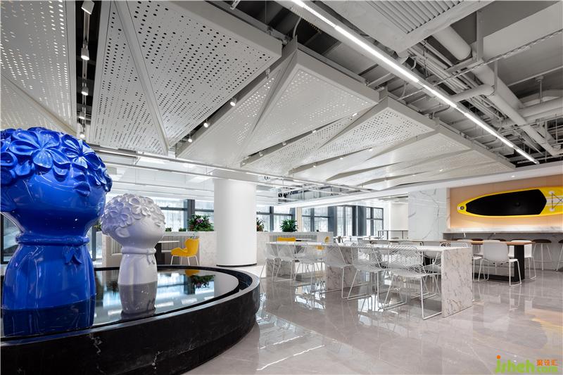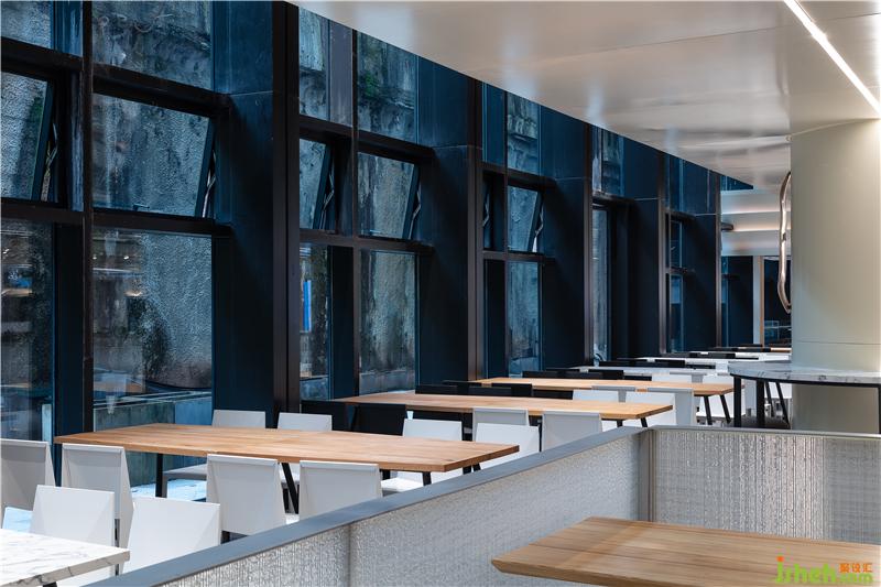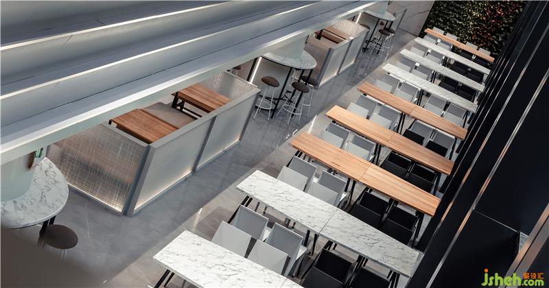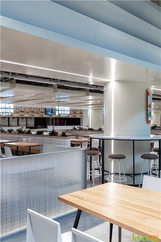 出自清代袁枚《隨園食單》里的老菜譜,被印到檔口前的玻璃柱上,這種穿越時空的美食對話,無形中增添了員工對我們美食大國的自豪感。吊頂被設計成一個大型的藝術裝置,也是這層餐廳隱藏的一個彩蛋,或許需要員工無數(shù)次的抬頭,才會驚喜的發(fā)現(xiàn),原來頂面是一幅巨型的“枯山水”景象。