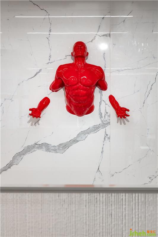 餐廳最大的亮點莫過于高科技元素的應(yīng)用了。首先是位于中庭的大型的“矩陣浮球”裝置,隨著音樂的節(jié)奏,浮球聞聲起舞,幻化成不同的造型和字符,滿滿的科技感和未來感。餐廳中無處不在的大型“拼屏”,隨時播放著企業(yè)的信息,美食的畫面和實時動態(tài),尤其是位于樓下餐廳入口處的大型“冰屏”,妥妥一幅未來世界的畫面。