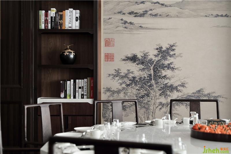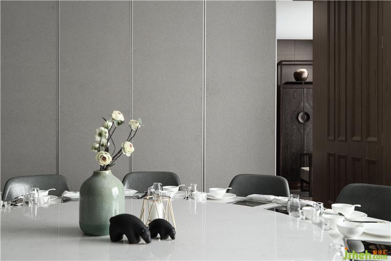 松竹、山水畫、褐色木飾面,約數(shù)位好友在此品味美食,談笑人生極簡的空間,沒有過多粉飾心身共處一室,難得一刻自在。