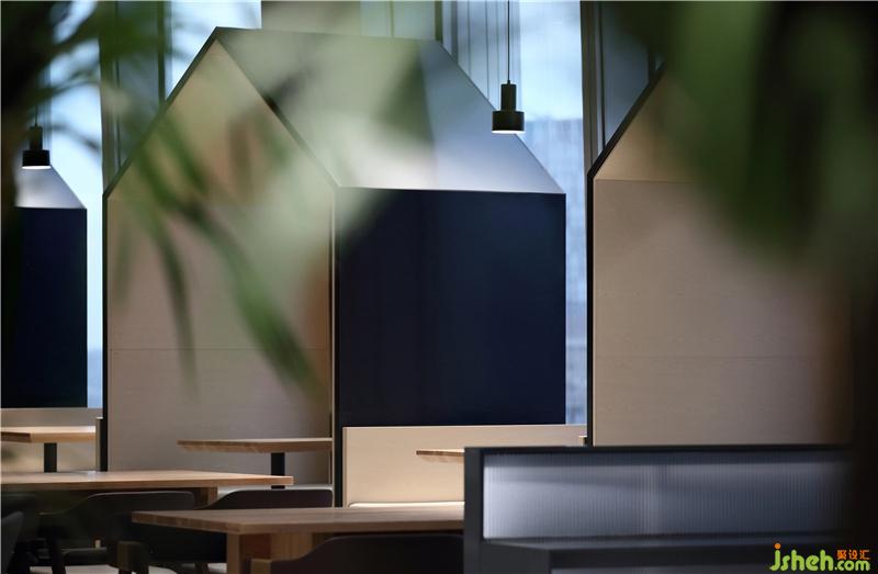 設(shè)計師還進(jìn)行了A、B、C、D四區(qū)劃分,將餐盤回收間設(shè)置在每個區(qū)域的出口處,環(huán)線的內(nèi)側(cè),避免回餐動線和就餐動線交叉,極大提高了餐廳的運轉(zhuǎn)效率。