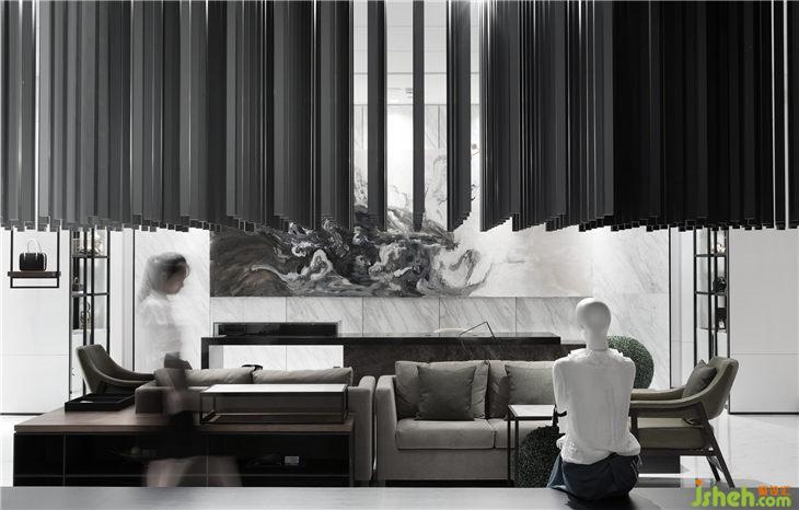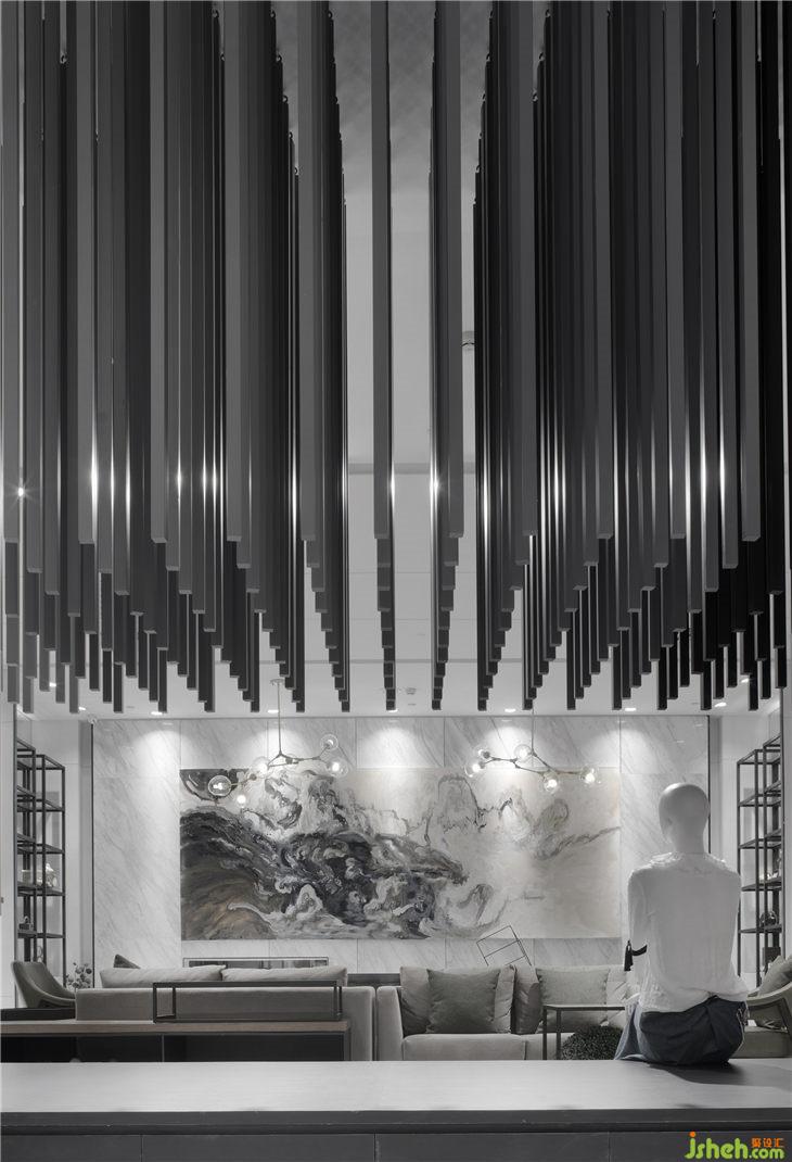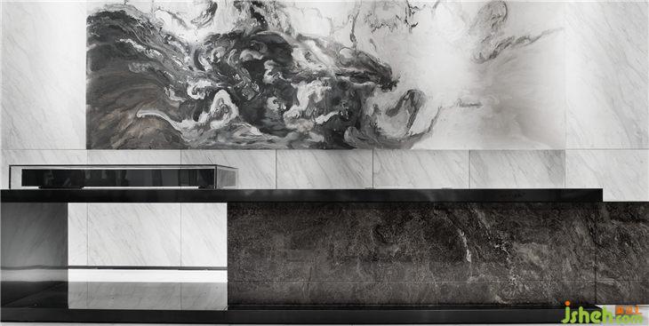 “藝術(shù)館”的主題使我們終於有機(jī)會(huì)嘗試純灰色空間,不同灰色系材料呈現(xiàn)出豐富的層次和質(zhì)感。在材質(zhì)組合搭配上,通過不同材質(zhì)間的對(duì)比則形成壹種有張力的戲劇化效果,使得空間的質(zhì)感豐富且細(xì)膩;