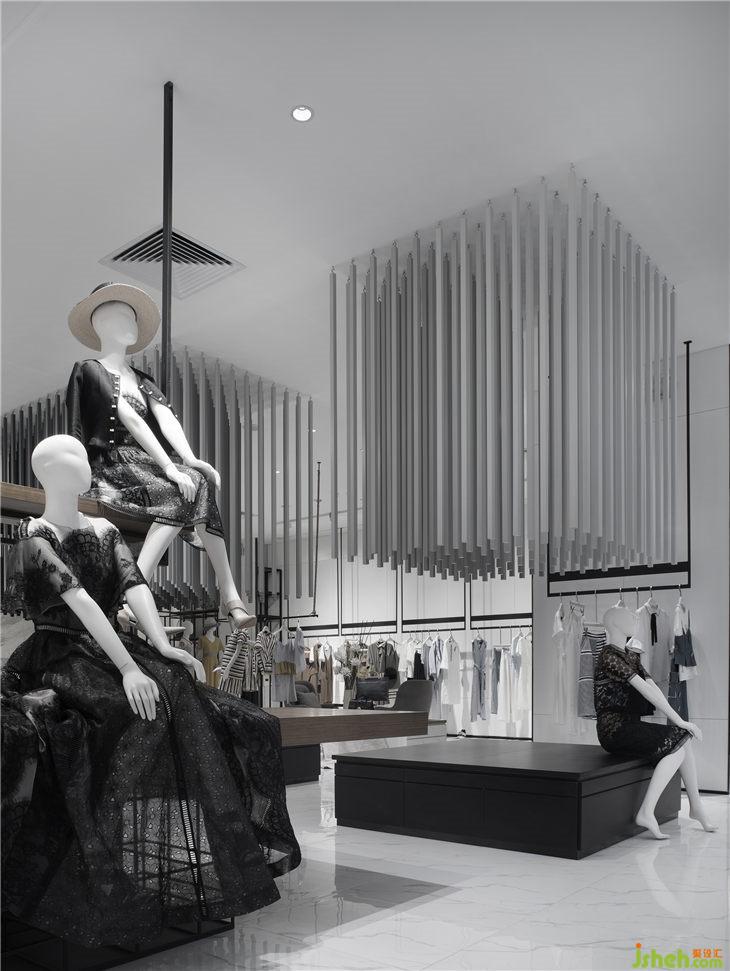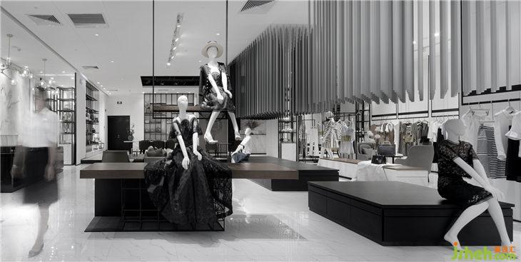 同時黑白“藝術(shù)館”空間所具有的儀式感和神秘感,使得陳列其中的商品獲得了藝術(shù)化的升華,增強了設(shè)計師服裝的品質(zhì)感,有效的提升了人們的購物體驗。