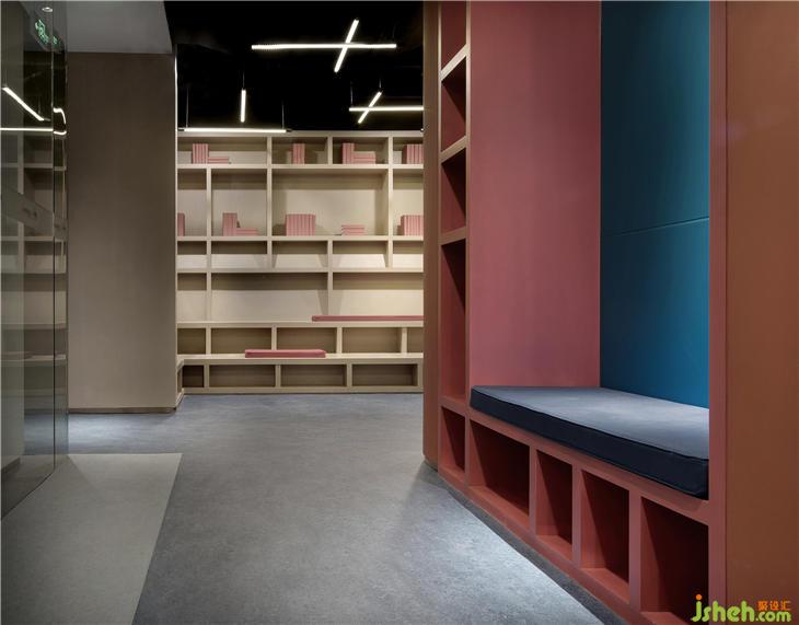 The well-defined sofa blocks make up a common lounge area, flexible space scales for visitors to sit back and relax, or to think or turn a book...