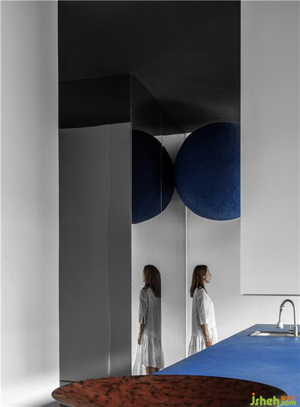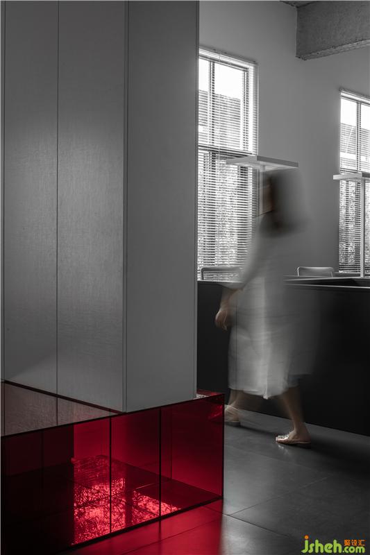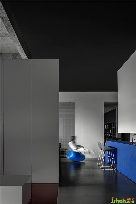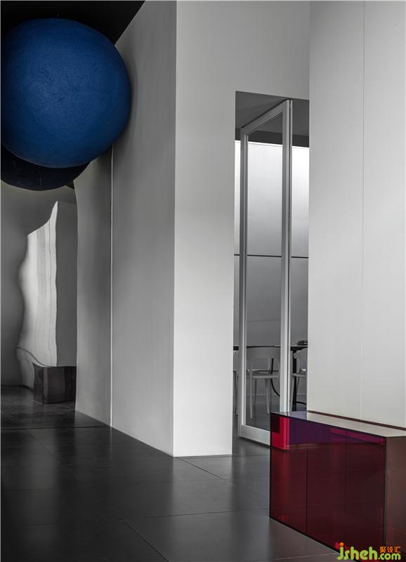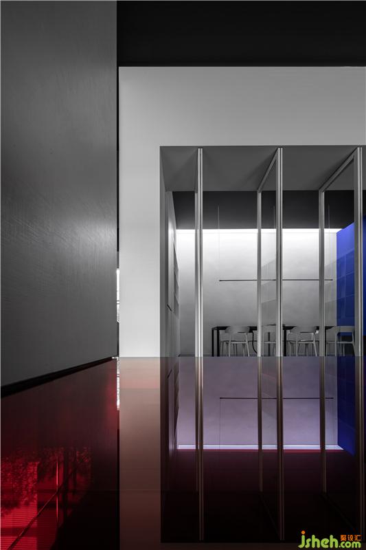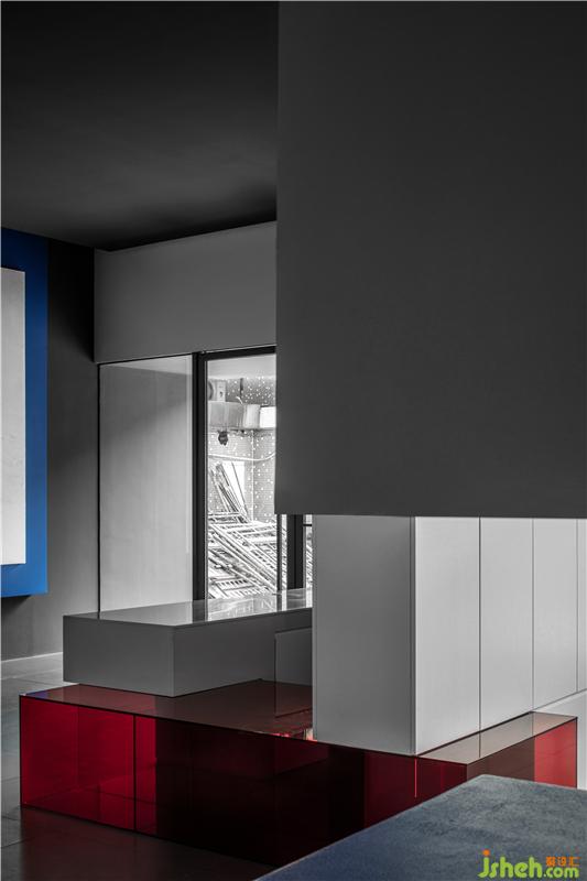 藍色交匯著紅色光影, 一切在緩緩的時間流動中充滿了凝聚的力量,印證著在同一享受的空間里原本就沒有真正異己之物的存在。所有可透視的表象明見性,使存在本身變得不由分說,空間也由此相互獨立、融合,從而創(chuàng)造有趣生動。