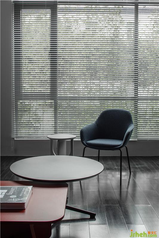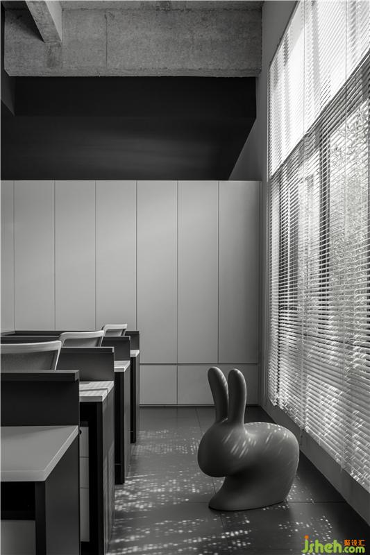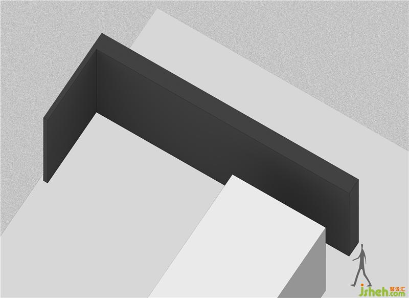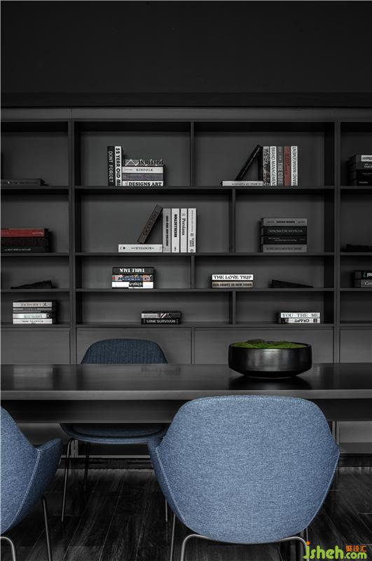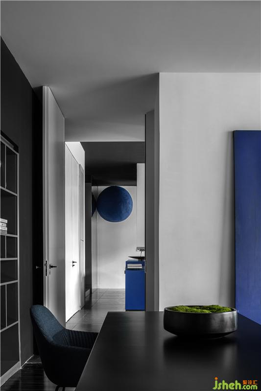進(jìn)入總經(jīng)理辦公室的空間過渡,從一個(gè)空間到另一個(gè)空間用深色墻面暗示完成狀態(tài)的過渡;