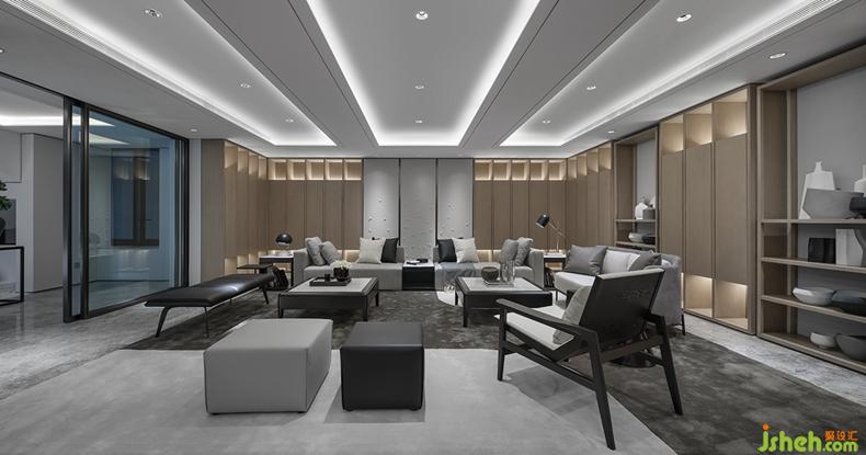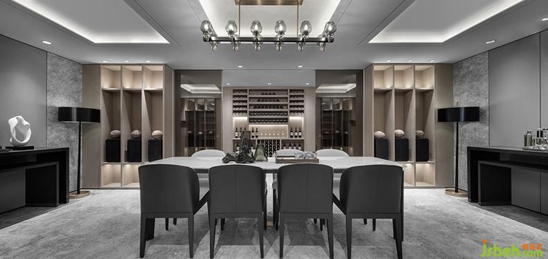 移步到休閑區(qū)紅酒區(qū),它是另一片天堂。休閑區(qū)家具整體布置走的非對稱原則,紅酒區(qū)則是對稱原則,家具款式簡約大氣。筆直的線條加之細(xì)節(jié)人性化撞角處的弧形處理帶來的設(shè)計感,同時考慮人體工程學(xué)的舒適度。家具的材質(zhì)上,親膚細(xì)麻布料配上柔軟的磨砂皮及半啞細(xì)皮,高冷的白色大理石,啞黑的開放漆木紋與槍黑無指紋不銹鋼腳。營造出放松、舒適的休閑空間。打開紳士的臺燈落地?zé)?,在這微醺的環(huán)境下,倒上紅酒,細(xì)細(xì)品嘗不一樣的人生,正所謂:酒不醉人,人自醉。