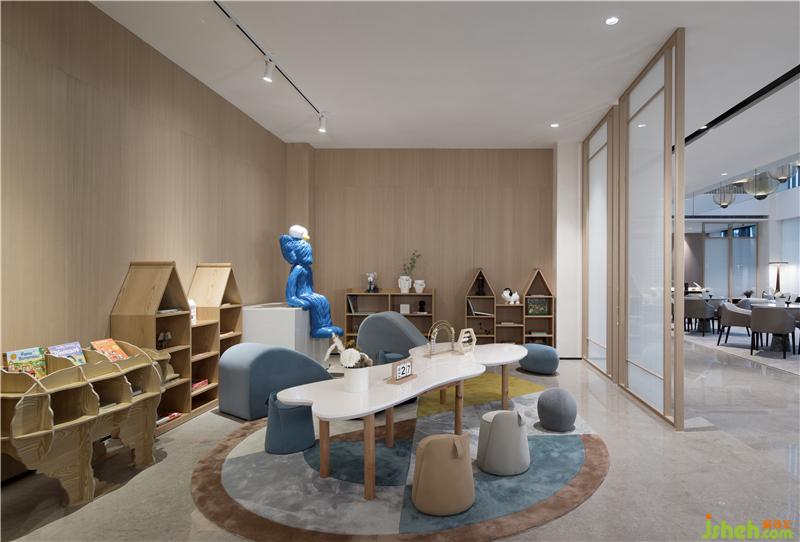 小朋友們?cè)诖随覒蛲鏄?lè)。巨型藝術(shù)雕塑KAWS顯得格外亮眼,小小的家具錯(cuò)落有致,書架上隨處可見(jiàn)童趣滿滿的繪本圖書,可愛(ài)的卡通擺件點(diǎn)綴著每個(gè)角落。